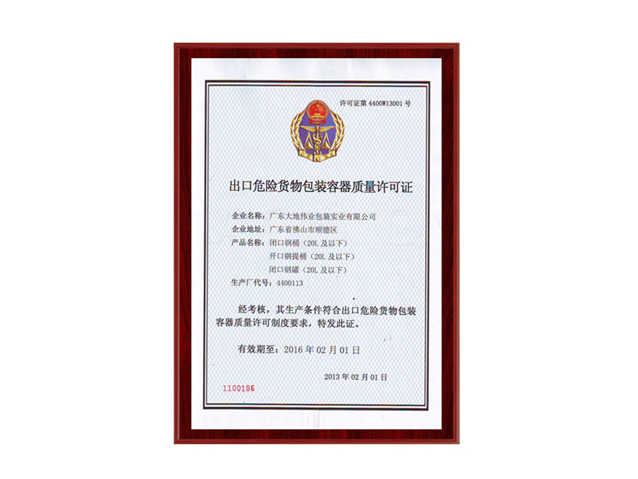 • 出口危險(xiǎn)貨物包裝容器質(zhì)量許可證
