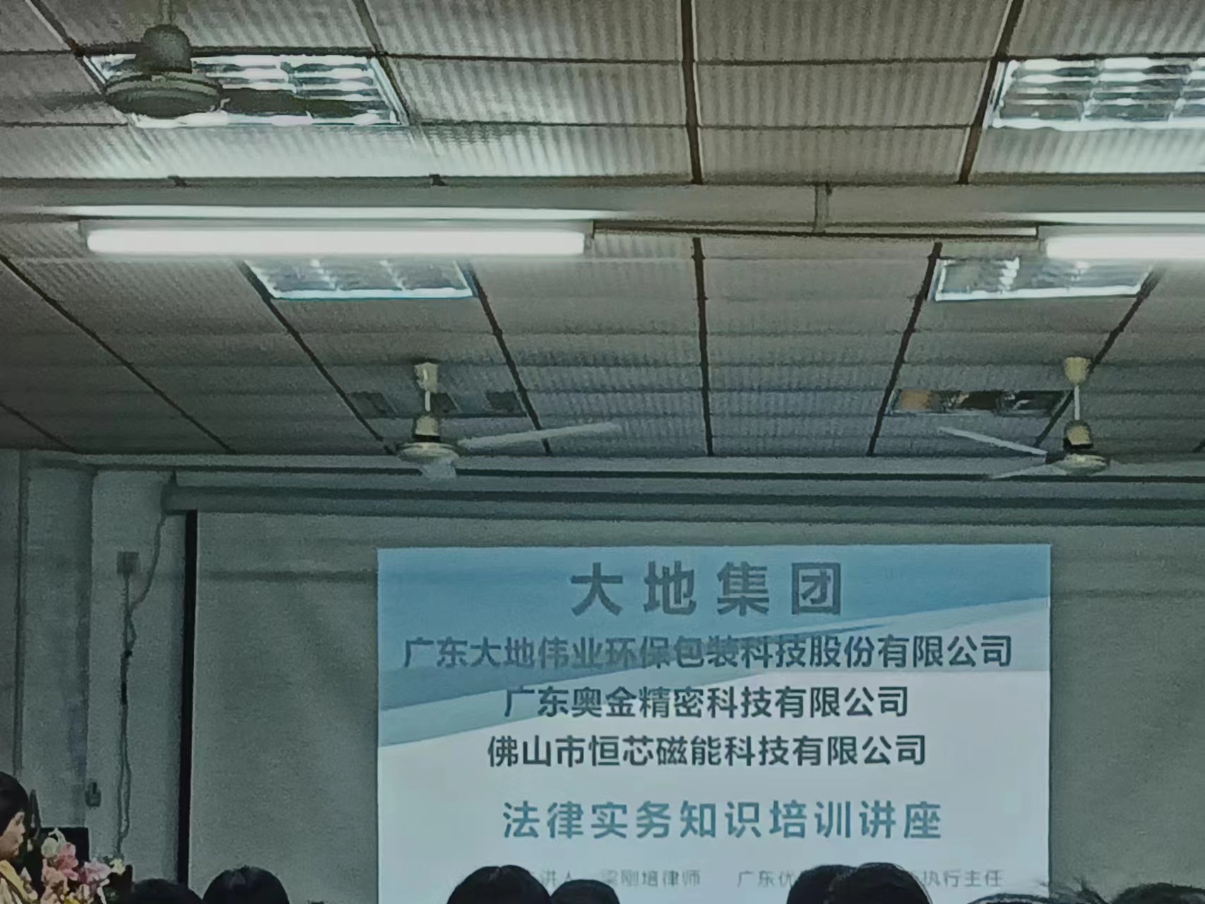 為了規(guī)避法律風(fēng)險(xiǎn),提高企業(yè)的合規(guī)性和經(jīng)營效率,我大地集團(tuán)屬下廣東大地偉業(yè)環(huán)保包裝科技股份有限公司,廣東奧金精密科技有限公司,佛山市恒芯磁能科技有限公司,10月7號(hào)下午邀請(qǐng)廣東優(yōu)粵律師事務(wù)所執(zhí)行主任梁剛培律師在我集團(tuán)四樓開法律實(shí)務(wù)知識(shí)培訓(xùn)講座。