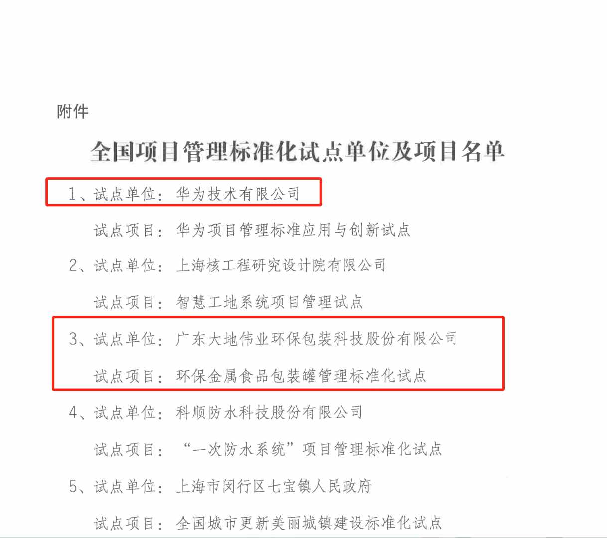 深耕環(huán)保金屬食品包裝罐30年,祝賀大地偉業(yè)環(huán)保包裝公司攜手華為公司一起成為全國項目管理標(biāo)準(zhǔn)化試點(diǎn)單位。