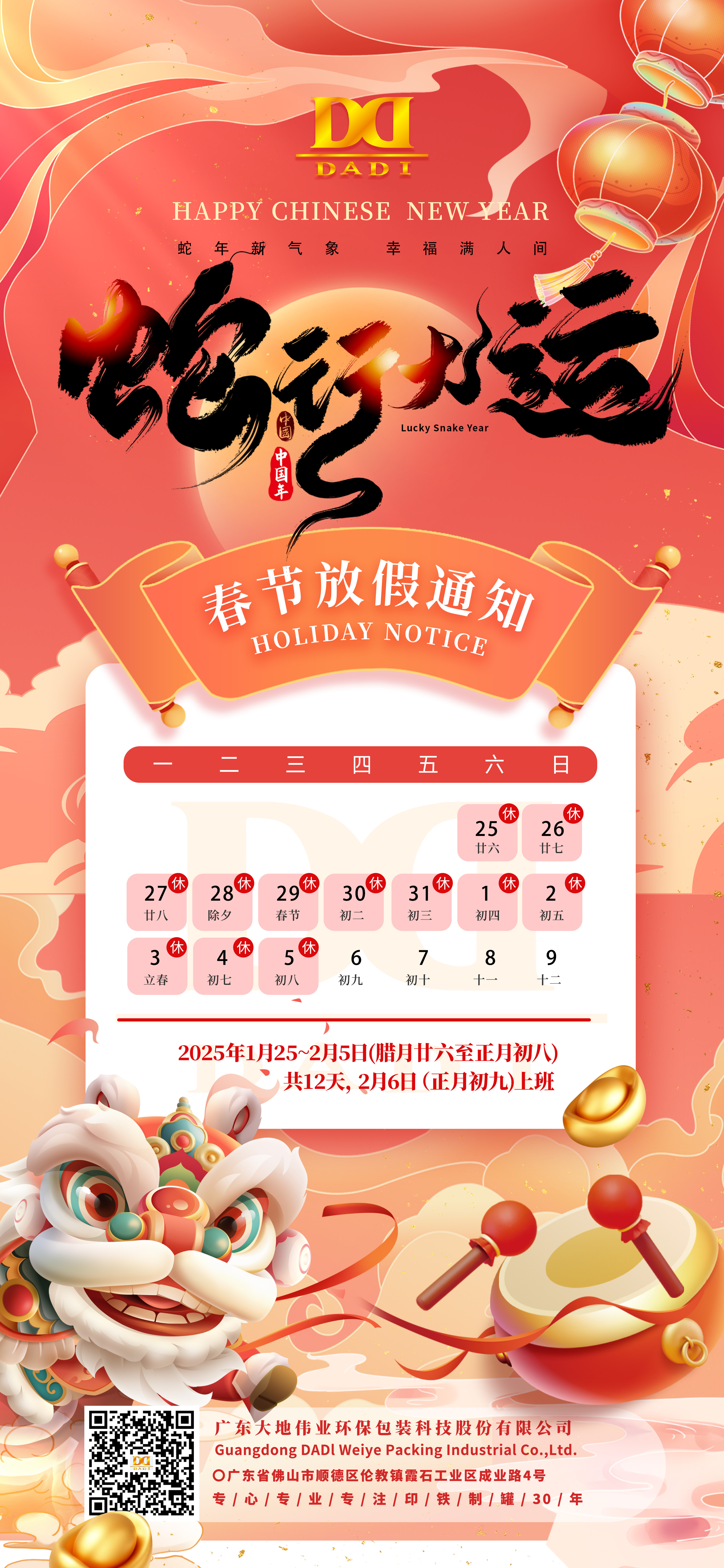 值此新春佳節(jié)來臨之際,廣東大地偉業(yè)環(huán)保包裝科技股份有限公司向大家致以最誠摯的節(jié)日問候!感謝大家在過去一年中的辛勤付出與卓越貢獻(xiàn)。