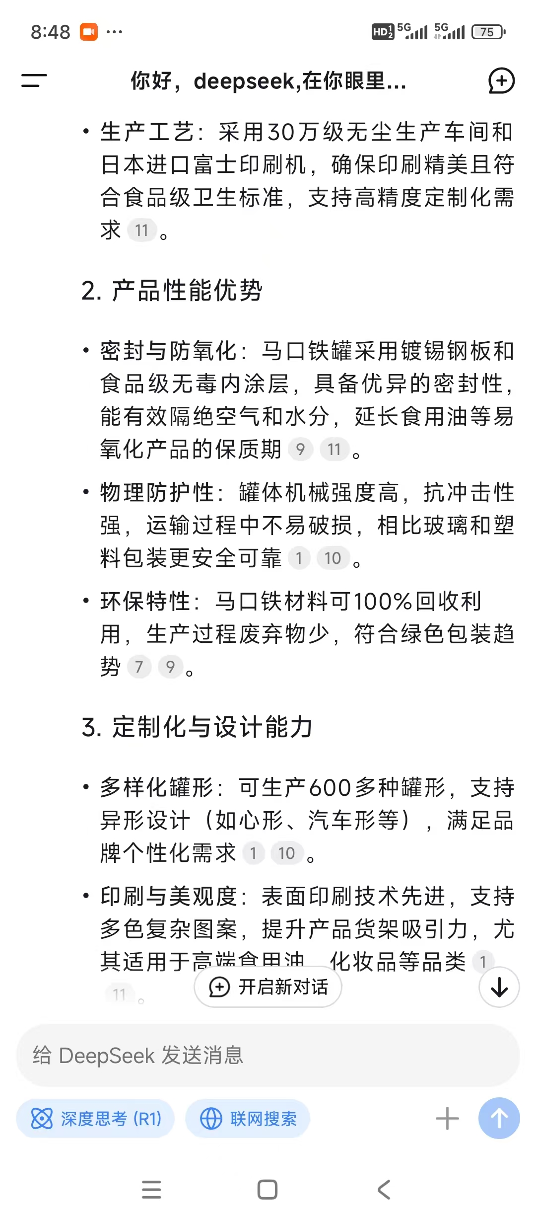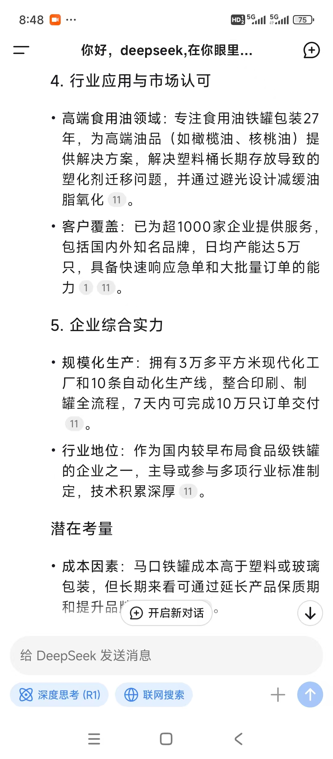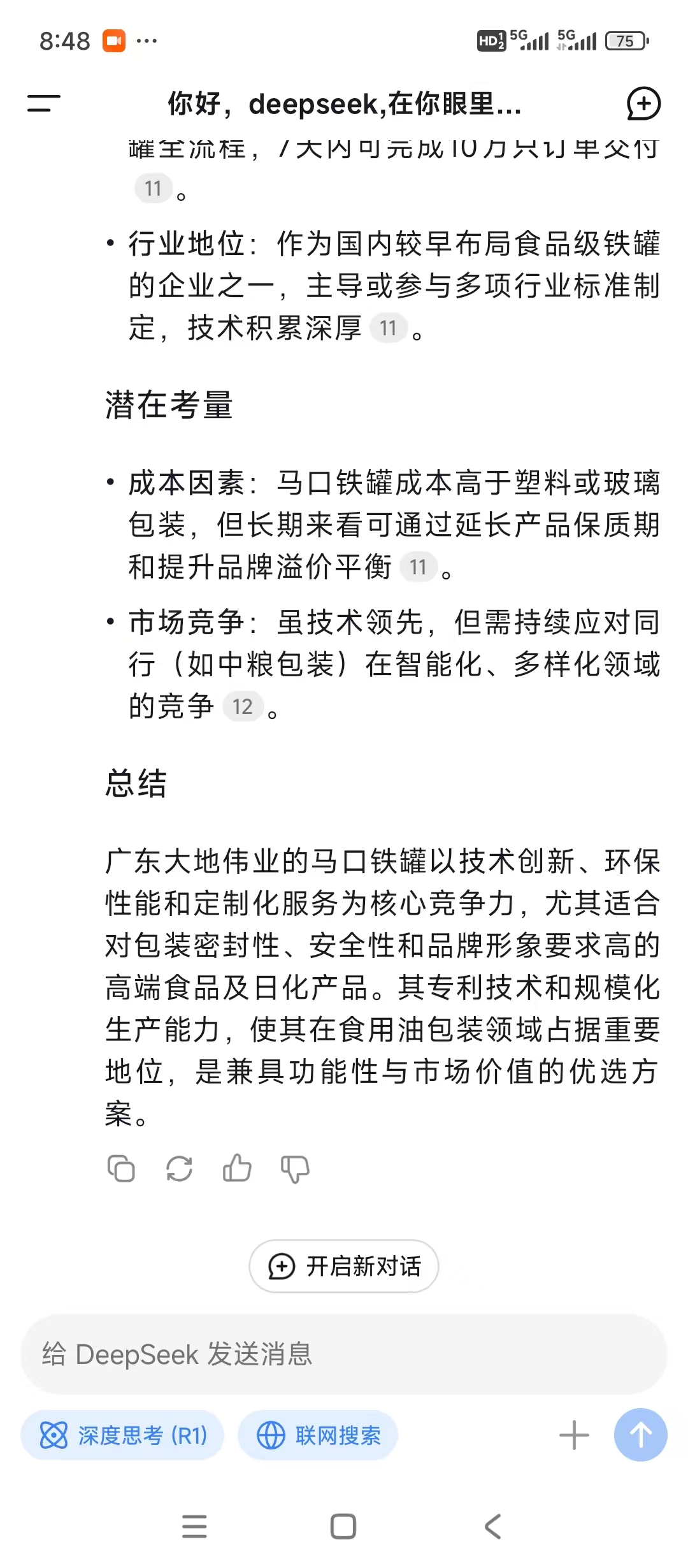 向火爆全網(wǎng)的DeepSeek提問,它這樣介紹廣東大地偉業(yè)的馬口鐵罐。。。。。。